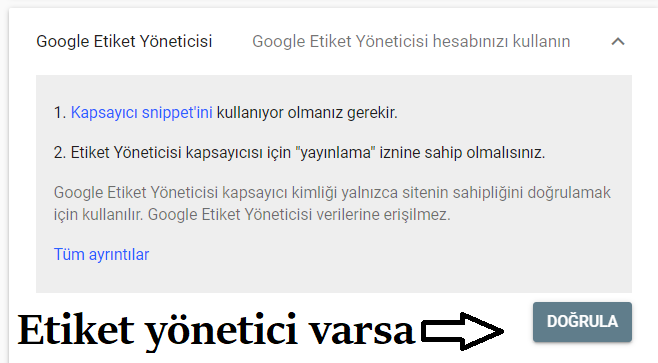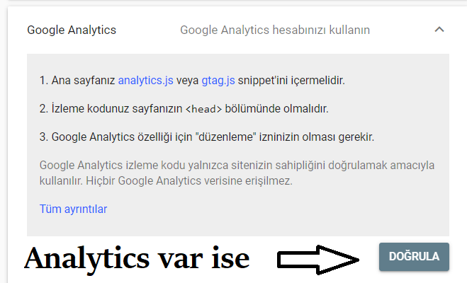 3. Google analytics hesabınız var ise doğrulama