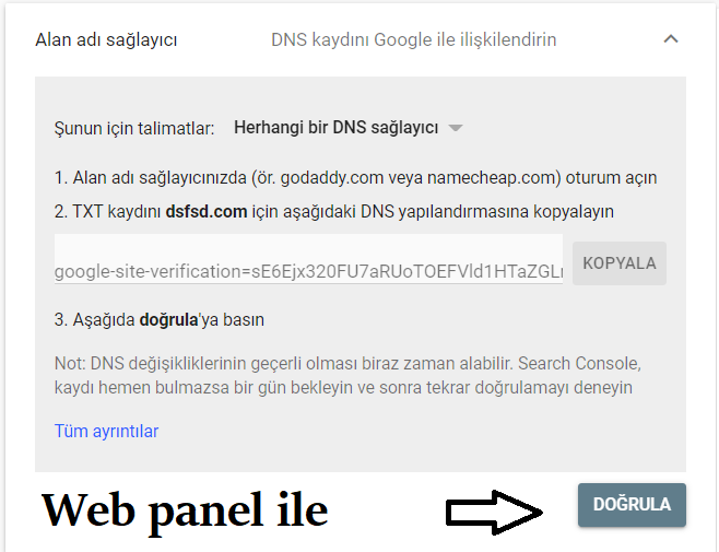5. Dns kaydı ile doğrulama
